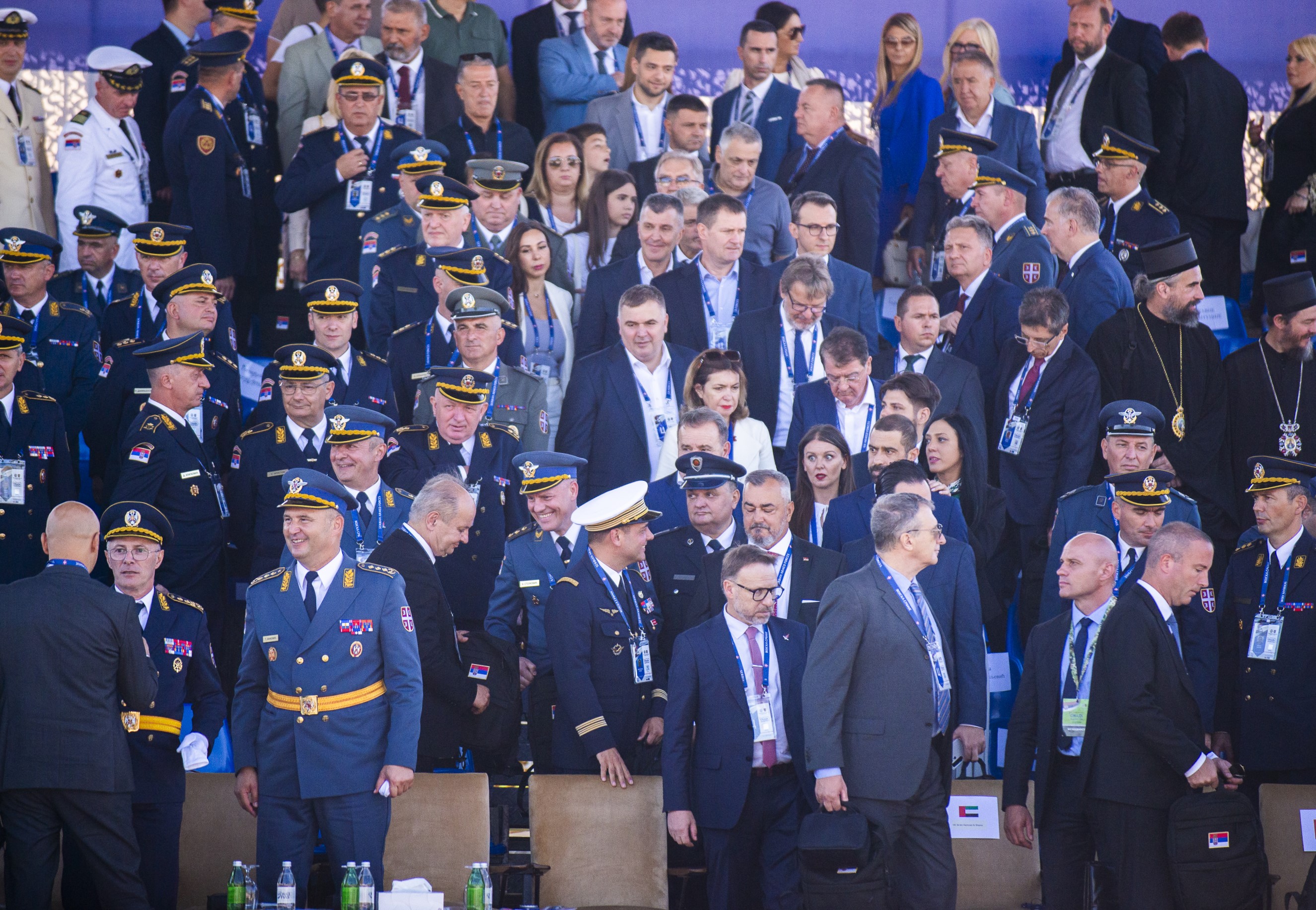 Današnjoj vojnoj paradi prisustvovali su i predsednik Ujedinjenih Arapskih Emirata, delegacija Kraljevine Bahrein, prestolonaslednik Dubaija, predsednici skupština i vlada Srbije i Srpske, srpski član Predsedništva Bosne i Hercegovine, ministri u vladama Srbije i Srpske, članovi Skupštine Crne Gore, zamenik premijera Republike Severne Makedonije, ministar odbrane Mađarske, načelnik Generalštaba OS Republike Azerbejdžan, načelnik Zajedničkog štaba OS Bosne i Hercegovine, načelnik štaba vazduhoplovstva i svemira OS Republike Francuske, komandant Nacionalne Garde Ohaja, članovi kolegijuma ministra odbrane i načelnika Generalštaba, rukovodstvo Jugoimport- SDPR, predstavnici diplomatskog i vojno-diplomatskog kora i druge uvažene zvanice.