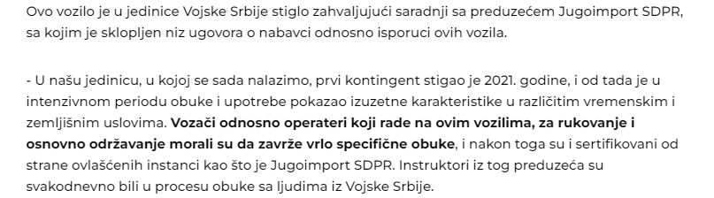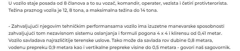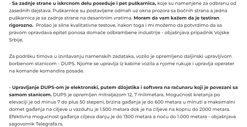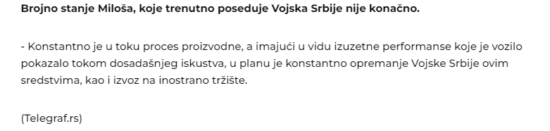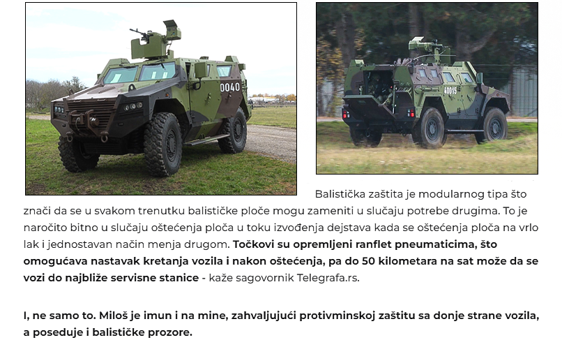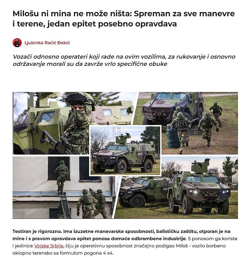 Drugi o nama 13.12.2023. Pripadnik 72. brigade za specijalne operacije Vojske Srbije o borbenom oklopnom vozilu "Miloš" Na portalu telegraf.rs, 13.12.2023. godine, objavljen je članak o borbenom oklopnom vozilu “Miloš”. Tekst možete pročitati u nastavku.